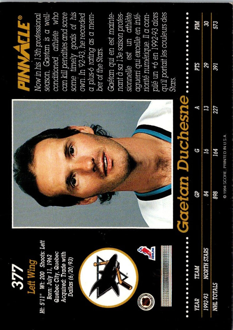 Description: 1993 Pinnacle Gaetan Duchesne #377