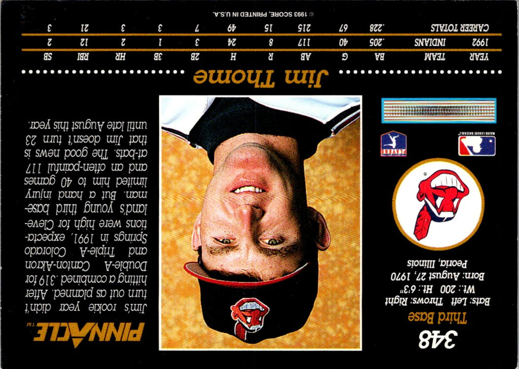 Description: 1993 Pinnacle Jim Thome #348
