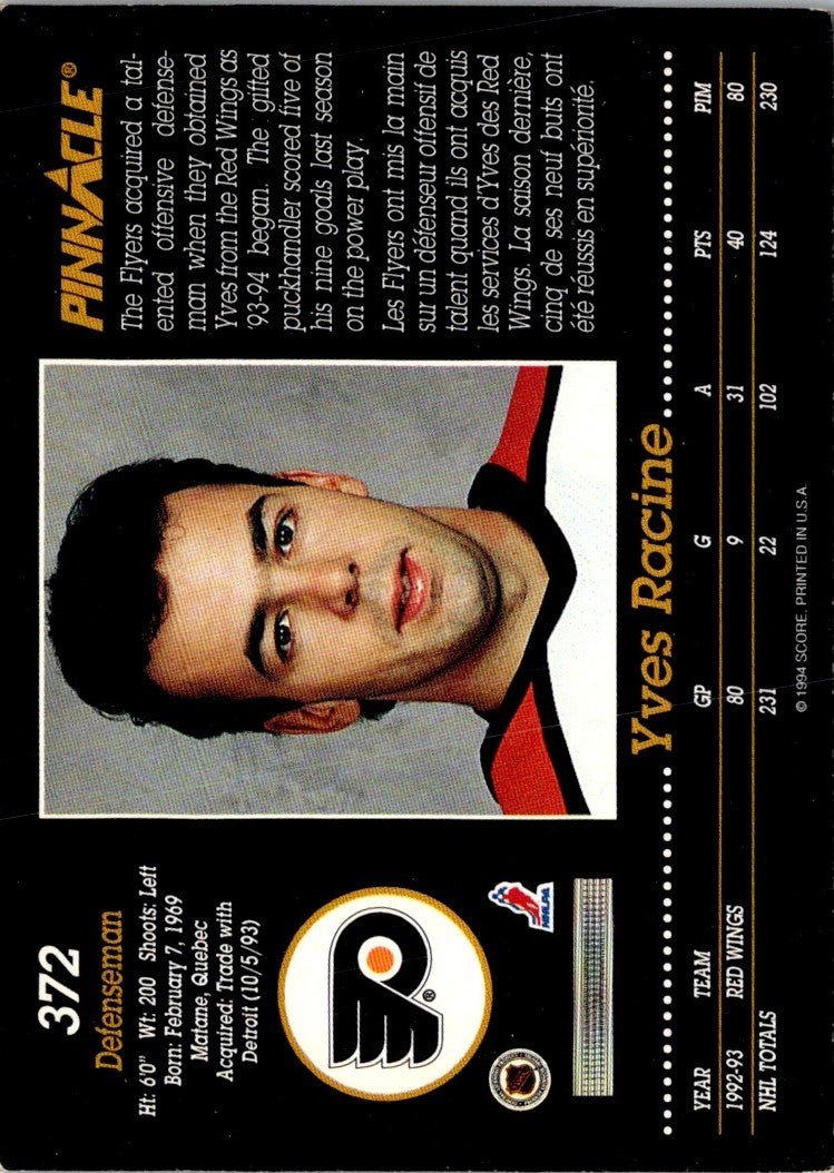 Yves Racine was a key defenceman for the Philadelphia Flyers in the early 90’s. This 1993 Pinnacle card, #372, features a great action shot of Racine in full flight. The card is a must-have for any Flyers fan, or collector of hockey cards. The card is in great condition and will make a great addition to your collection. Make sure you get your hands on this classic piece of hockey memorabilia today.