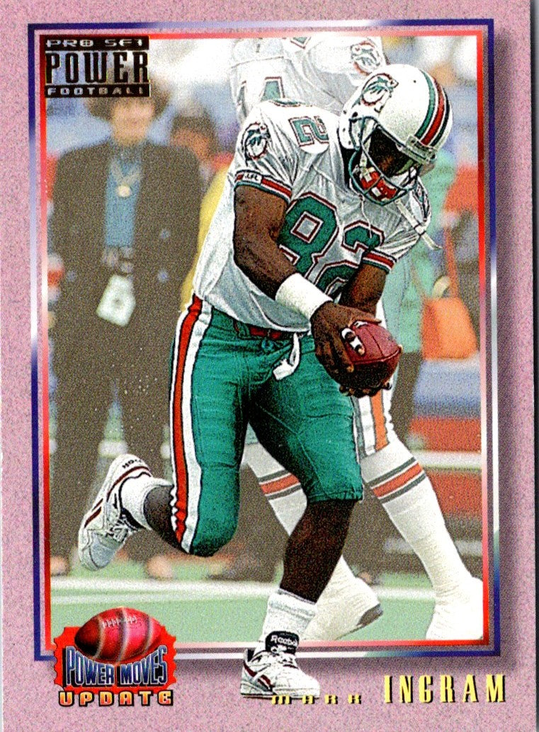 1993 Pro Set Power Update Prospects Mark Ingram #PMUD15 features a bold and eye-catching portrait of the future NFL Hall of Famer. The card features Ingram in his signature Dolphins uniform with stats on the back. This card is a must-have for any Dolphins fan or football card collector. Add this classic piece of sports memorabilia to your collection today and bring the power of the gridiron to your home.