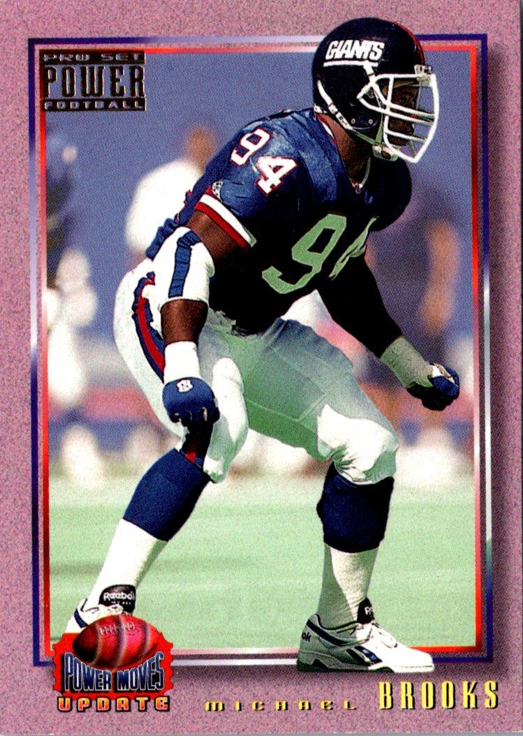 This 1993 Pro Set Power Update Prospects Michael Brooks #PMUD44 New York Giants card is a must have for Giants fans and football card collectors! The card is in mint condition with sharp corners, crisp edges, and vibrant colors. It features an action photo of Brooks in his Giants uniform, along with his name and information on the back. This card is sure to be a great addition to your sports memorabilia collection!