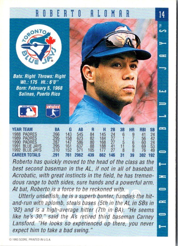 Description: 1993 Score Roberto Alomar #14