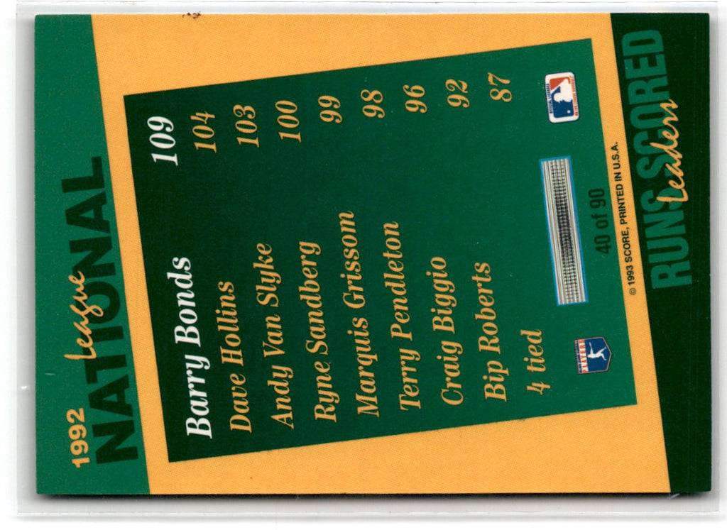 Description: 1993 Score Select Stat Leaders Barry Bonds #40