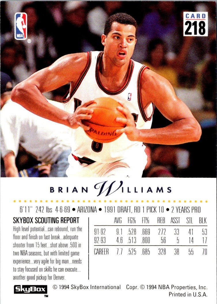 Description: 1993 SkyBox Brian Williams #218
