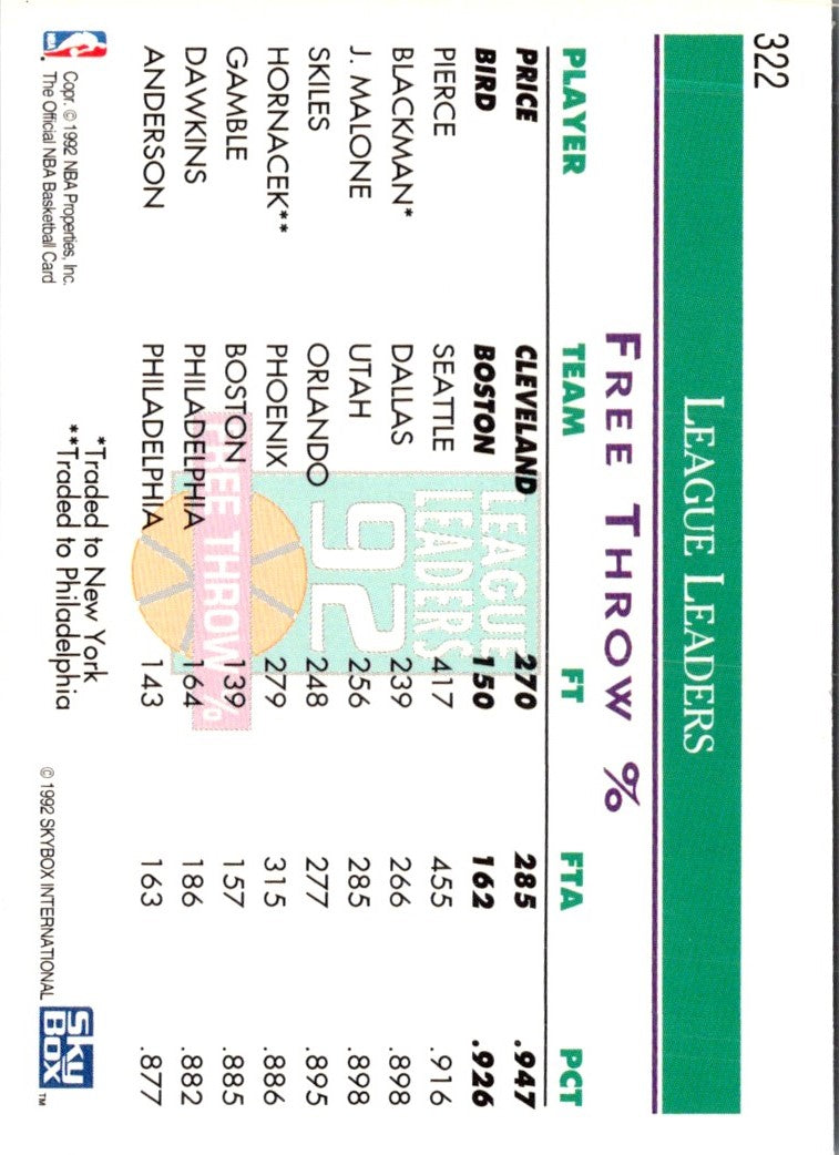 This 1993 SkyBox Mark Price card #322 features the legendary Cleveland Cavaliers point guard in full action! Price was a four-time All-Star and consistently one of the NBA's top scoring guards. He was also a star for the Cavaliers during the early 1990s, leading them to the playoffs in the 1992-93 season. This card is perfect for any collector looking to add a classic piece of NBA memorabilia to their collection. Add this card to your collection today and commemorate the greatness of one of the NBA's all-time greats!