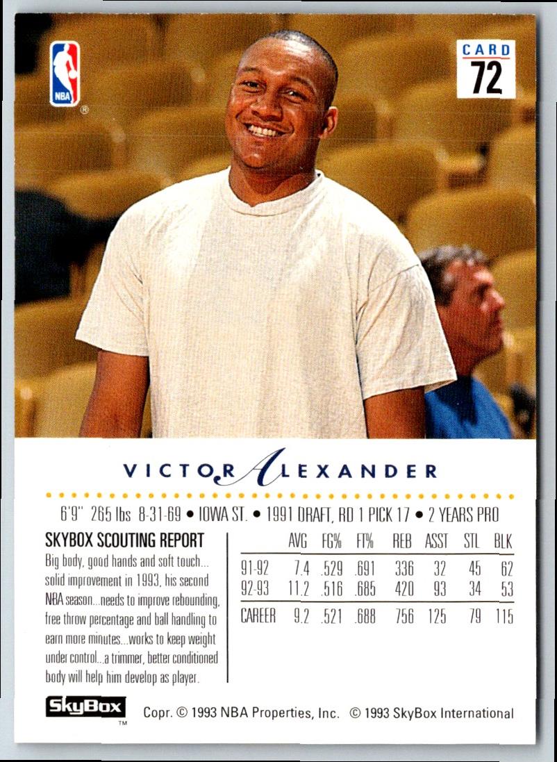 Relive the magic of the 1993 Golden State Warriors with this collectible piece of memorabilia! This 1993 SkyBox Victor Alexander #72 card is the perfect addition to any collection. Featuring vibrant colors and high-quality images of Alexander in his Warriors uniform, this card will transport you back in time to the days of the '93 Warriors. It's an essential piece of memorabilia for any serious Warriors fan!
