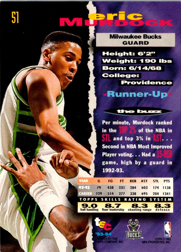 Description: 1993 Stadium Club Eric Murdock #51