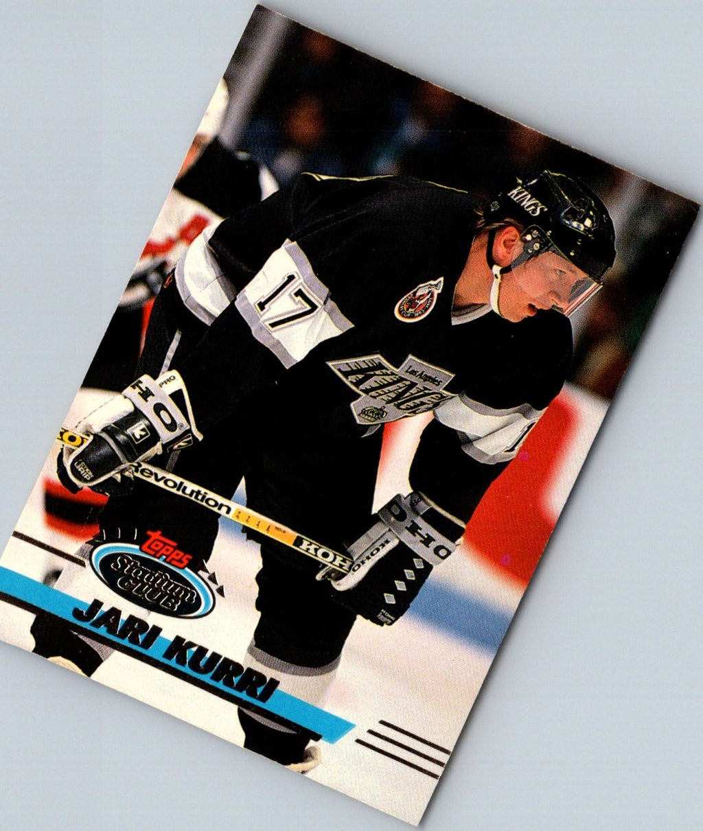 This 1993 Stadium Club Jari Kurri #400 from the Los Angeles Kings is a must-have for any hockey fan! The card is in great condition, with sharp corners and vibrant colors that will really stand out in your collection. It features a great picture of Kurri in his Kings uniform and is sure to be a great addition to your collection! Celebrate the legacy of one of the greatest players in NHL history with this card today!