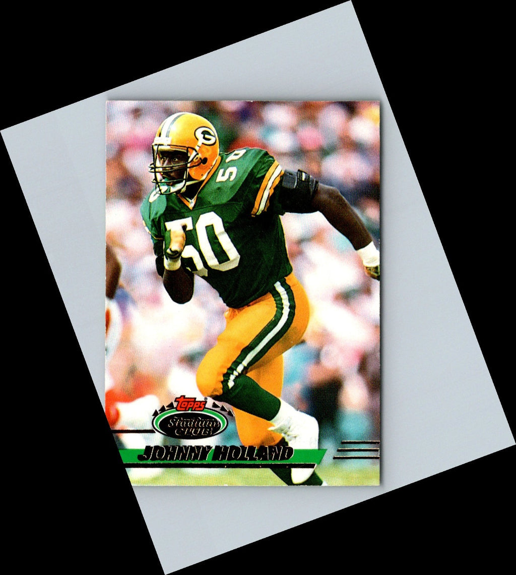 This 1993 Stadium Club Johnny Holland #259 Green Bay Packers card is a great way for the avid collector to add a unique piece to any collection! Featuring gorgeous artwork and bold colors, this card will be a great addition to any fan's collection. Holland's iconic image is captured in full action, making this card a must-have for any fan of the Green Bay Packers. Add this card to your collection today and remember one of the greatest players to ever grace the gridiron!