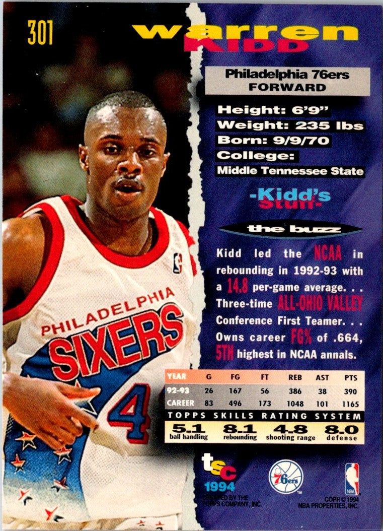 Description: 1993 Stadium Club Warren Kidd #301 Rookie