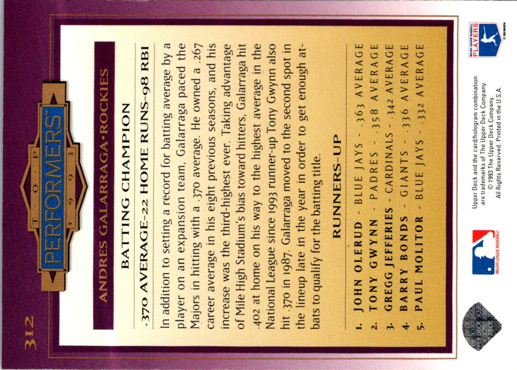 Description: 1993 Studio Superstars on Canvas Andres Galarraga #9