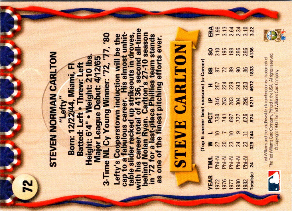Description: 1993 Ted Williams Steve Carlton #72