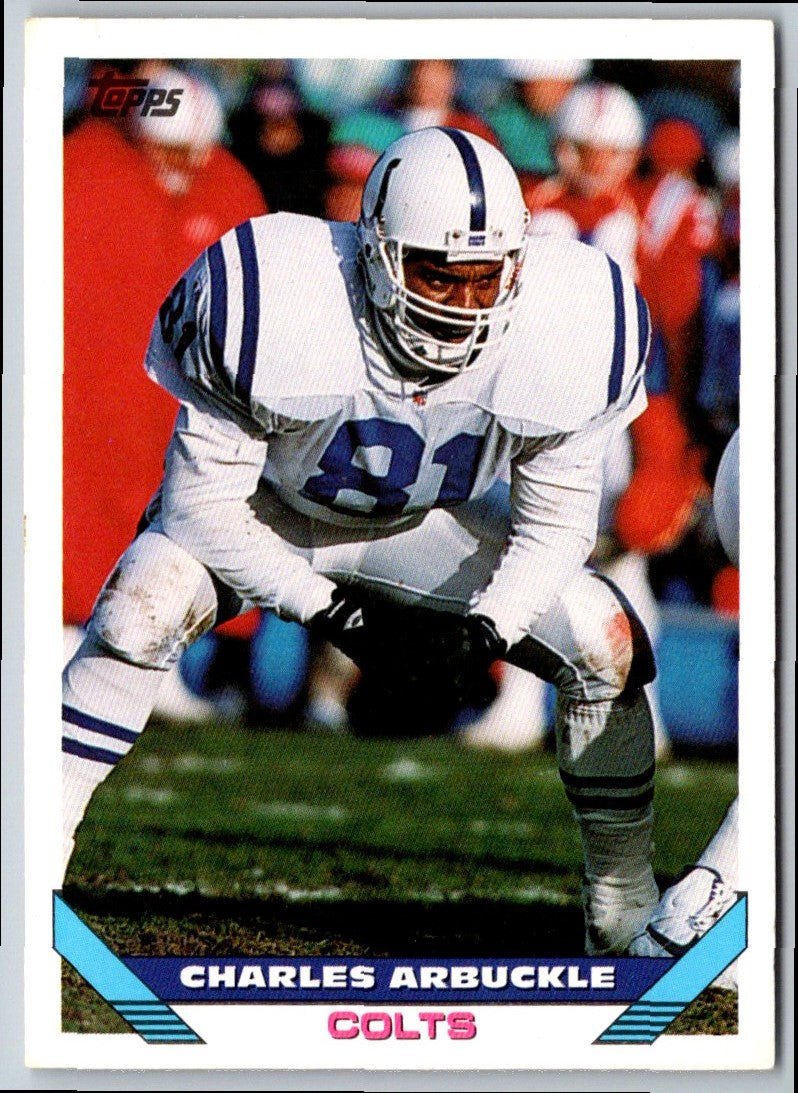 This 1993 Topps Charles Arbuckle #457 Indianapolis Colts card is a must-have for any football fan or collector. A standout in the crowd, it features a vibrant photo of the Colts star in action with a crisp and clean design. With its bold colors and sharp edges, this card is sure to make a great addition to any collection. Get your hands on this classic card today and relive the great history of the Indianapolis Colts!