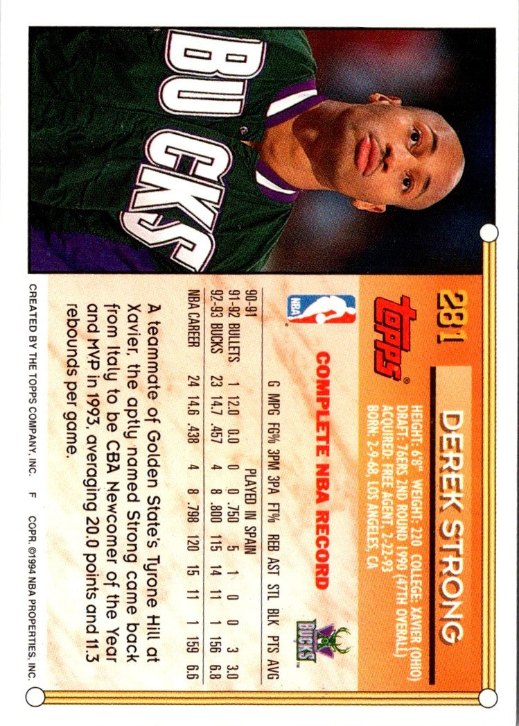 This 1993 Topps Derek Strong #281 card from the Milwaukee Bucks is a must-have for any NBA fan! Featuring an action shot of Strong on the court, this card is sure to bring back memories of his time in the league. Derek Strong was a key player on the Bucks' roster during his time with them, and this card is a great way to commemorate his career. Don't miss out on this classic Topps card, perfect for any collection!