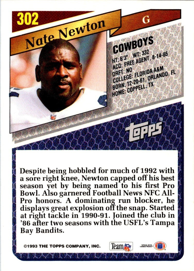 Description: 1993 Topps Nate Newton #302