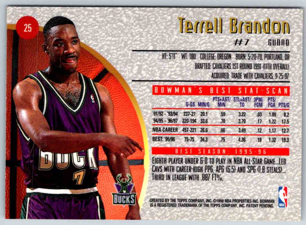 1993 Topps Terrell Brandon #25 is a must-have trading card for any basketball fan. Showcasing the dynamic Cleveland Cavaliers point guard, the card features Brandon in his road uniform with a detailed action shot. It is a great piece of memorabilia that captures the excitement and skill of one of the NBA's best players. With the card's simple yet classic design, it will make a great addition to any sports fan's collection. Add this card to your collection today and remember the greatness of Terrell Brandon!