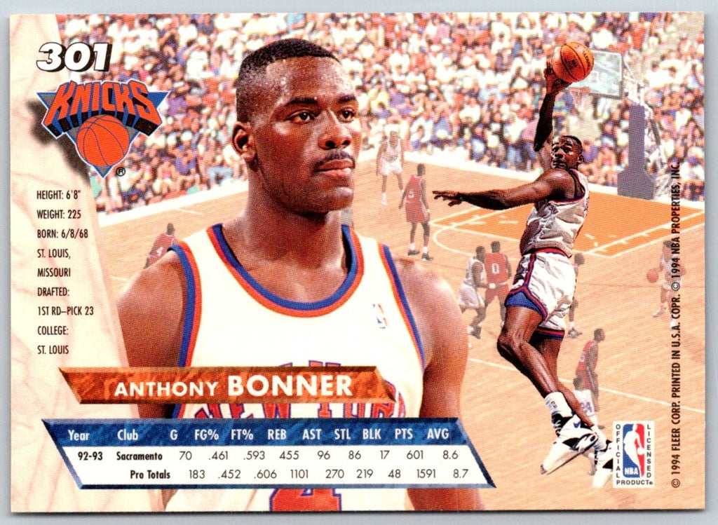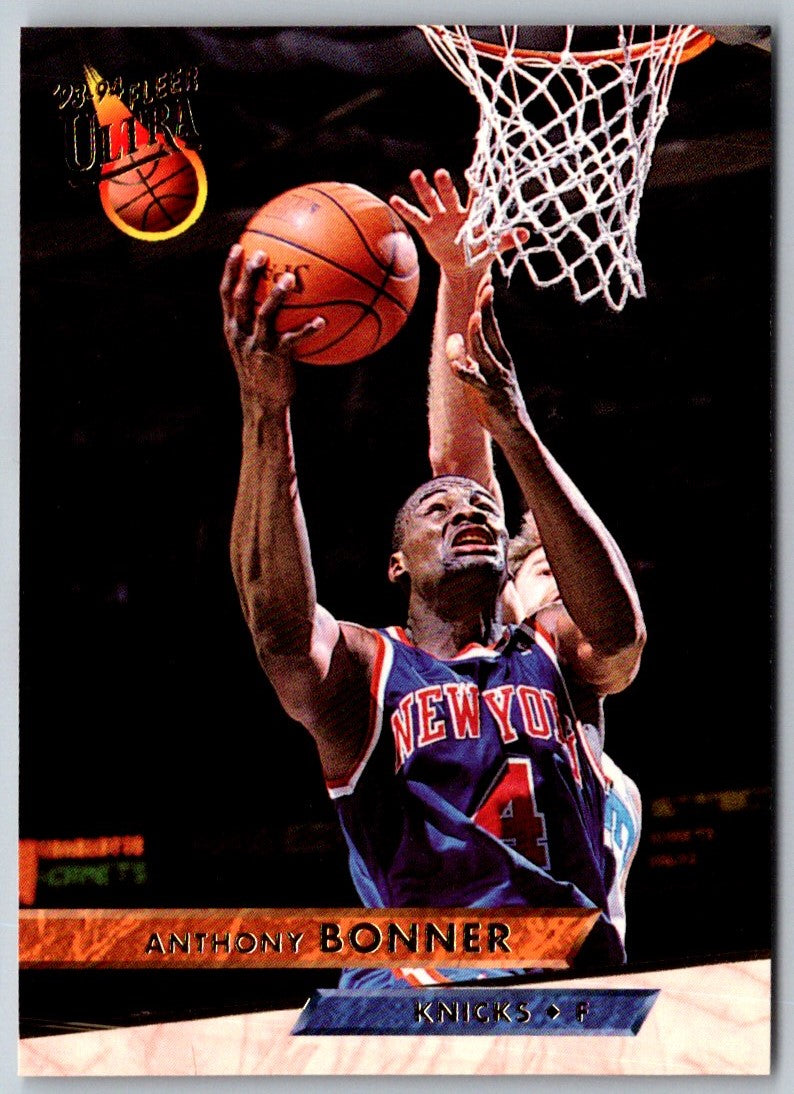 This 1993 Ultra Anthony Bonner #301 New York Knicks card is a must-have for any basketball fan or collector! Featuring bright colors and sharp details, this card is the perfect way to show your support for the Knicks. With a glossy finish and vibrant graphics, it's sure to stand out in any collection. Add this card to your roster and bring some Knicks pride to your home or office!
