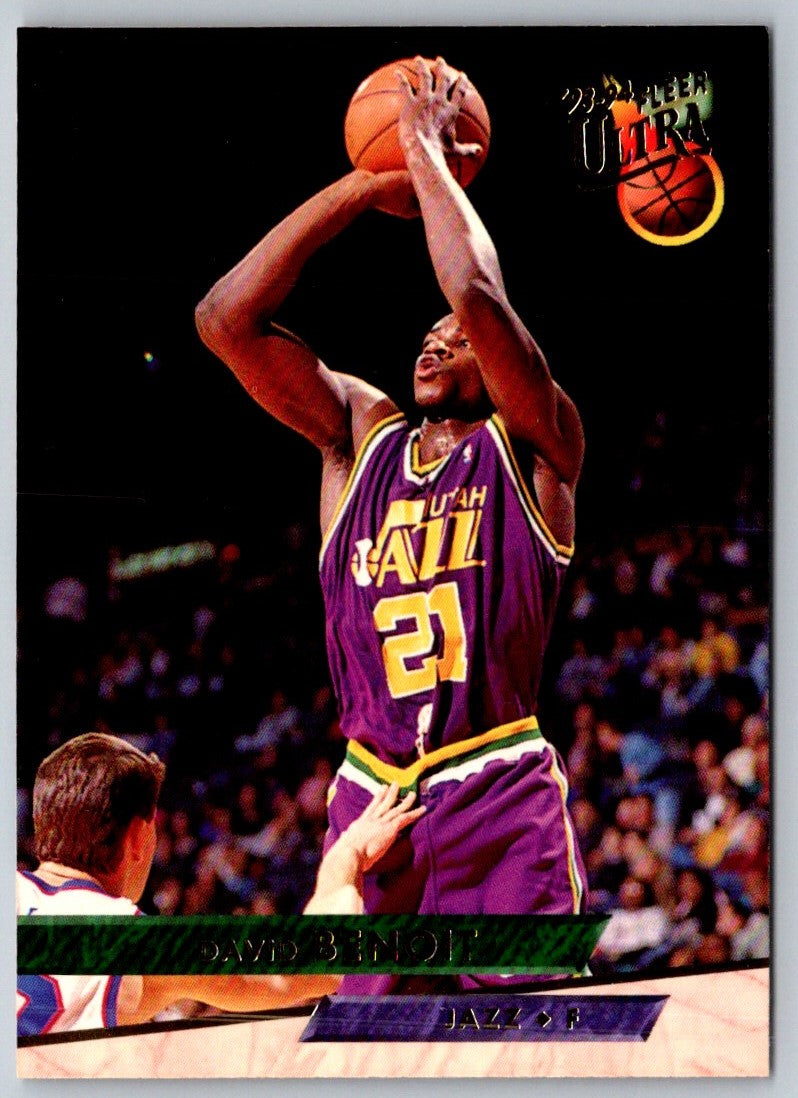 This 1993 Ultra David Benoit #184 Utah Jazz card is a must-have for any Jazz fan! Featuring a crisp, full-color portrait of the legendary point guard in his home jersey, this card captures the energy and excitement of Benoit's time with the Jazz. With no autograph, limited edition, or rare features, this card is sure to become an essential part of any basketball memorabilia collection. With its vibrant colors and classic design, it's the perfect way to show your love for the Jazz and the Benoit era.