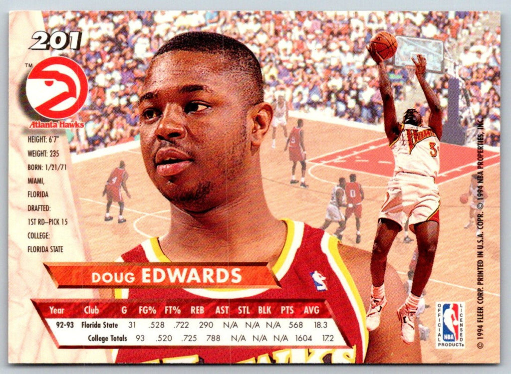 This 1993 Ultra Doug Edwards #201 Atlanta Hawks trading card is a must-have for any collector. Featuring a full-color action shot of Edwards on the court, the card is a great way to commemorate the career of a Hawks legend. The back of the card features Edwards' statistical and biographical information, making it a great source of information for any fan. Add this card to your collection today and show your support for one of the best to ever play for the Hawks.