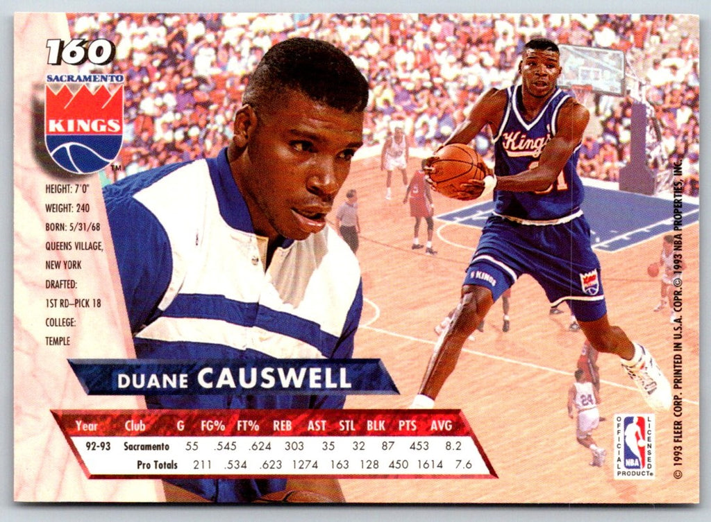 This 1993 Ultra Duane Causwell #160 Sacramento Kings card is a must-have for any basketball fan. Showcasing Causwell in his Kings uniform, this card is sure to be a classic collectible. Featuring detailed photography and classic team colors, this card will look great on display in any collection. The perfect addition to any basketball card collection, this card is sure to be a hit. Get your hands on this piece of history and add it to your collection today.
