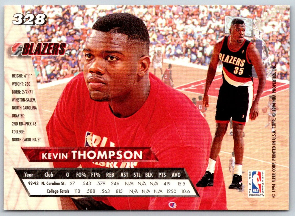 This 1993 Ultra Kevin Thompson #328 Portland Trail Blazers card is the perfect addition to any basketball fan's collection. Featuring a high-quality full-color photo of Thompson in his Trail Blazers uniform, this card will bring back memories of one of the greatest players to ever don the red and black. With its glossy finish, this card is sure to stand out from any other card in your collection. It's a must-have for any fan of the Trail Blazers or Thompson himself. Don't miss out on this classic card!
