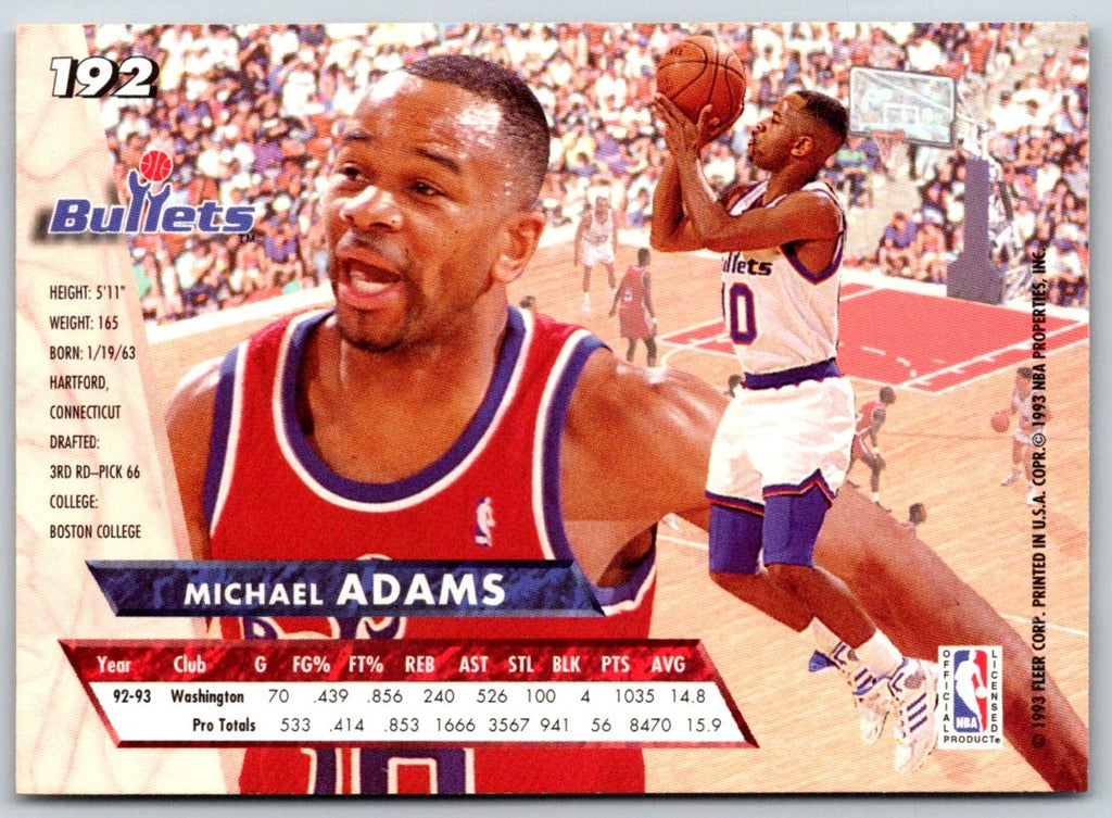 This 1993 Ultra Michael Adams #192 Washington Bullets Trading Card is an essential addition to any basketball fan's collection. Featuring a high-quality image of Adams in his Bullets uniform, this card is sure to become an instant classic. The card also features detailed stats and biographical information about Adams, making it the perfect way to honor and remember one of the greatest players of the 1990s. Add this card today to your collection and celebrate the legacy of Michael Adams.