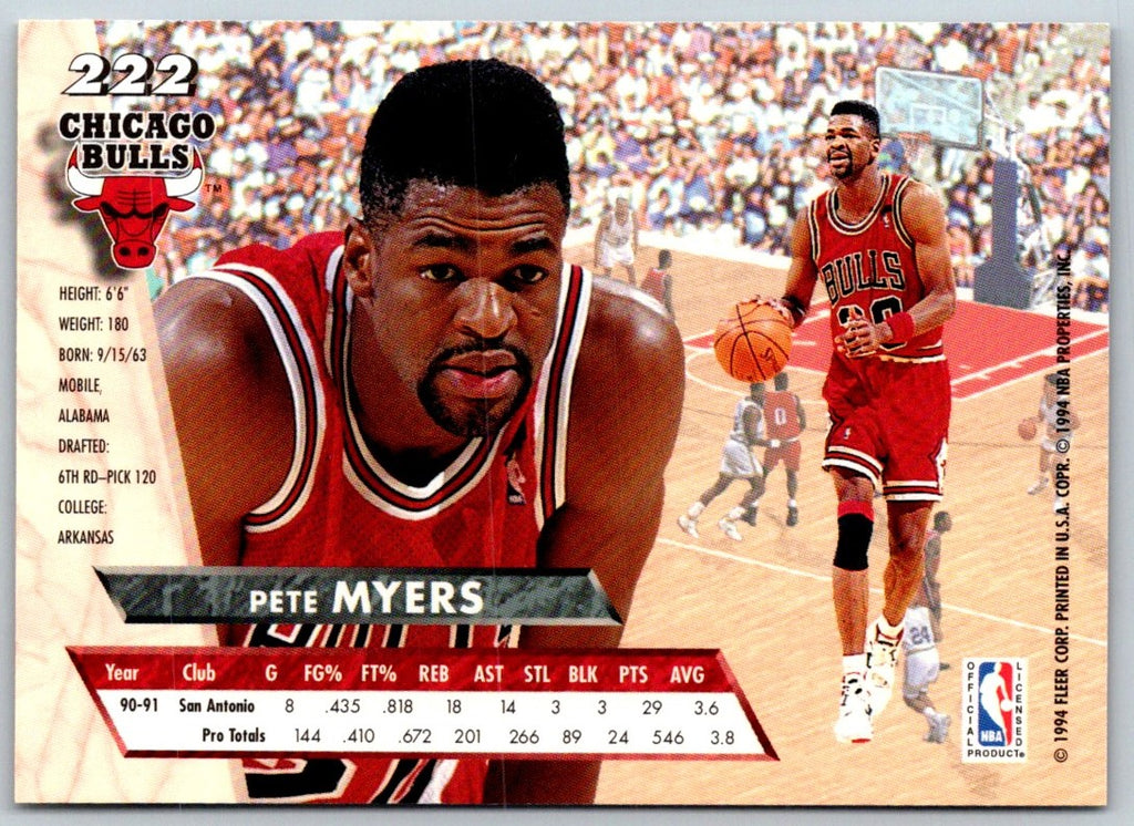 This 1993 Ultra Pete Myers #222Chicago Bulls card is a must-have for serious basketball fans and card collectors alike! Featuring a vibrant image of Pete Myers in mid-action with the Bulls, this card is an attractive addition to any collection. Its unique design elements and bold colors make it a great conversation starter. This card captures Pete Myers' legendary athleticism and brings back nostalgic memories of the Bulls' iconic dynasty. It's the perfect addition to your sports memorabilia collection.