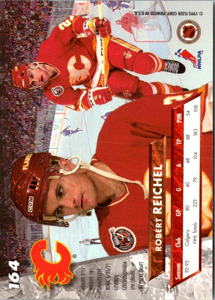 This 1993 Ultra Robert Reichel #164 Calgary Flames card is a must-have for any serious hockey fan. Featuring a vibrant close-up of the star forward, this card is a great way to add some Flames spirit to your collection. Reichel was an integral part of the Flames' success in the early 1990s, and this card is the perfect way to commemorate his contribution. With its crisp colors and sharp details, this card is sure to stand out in any collection. Whether you're a fan of Reichel or the Flames, this card is a great choice for any hockey enthusiast.