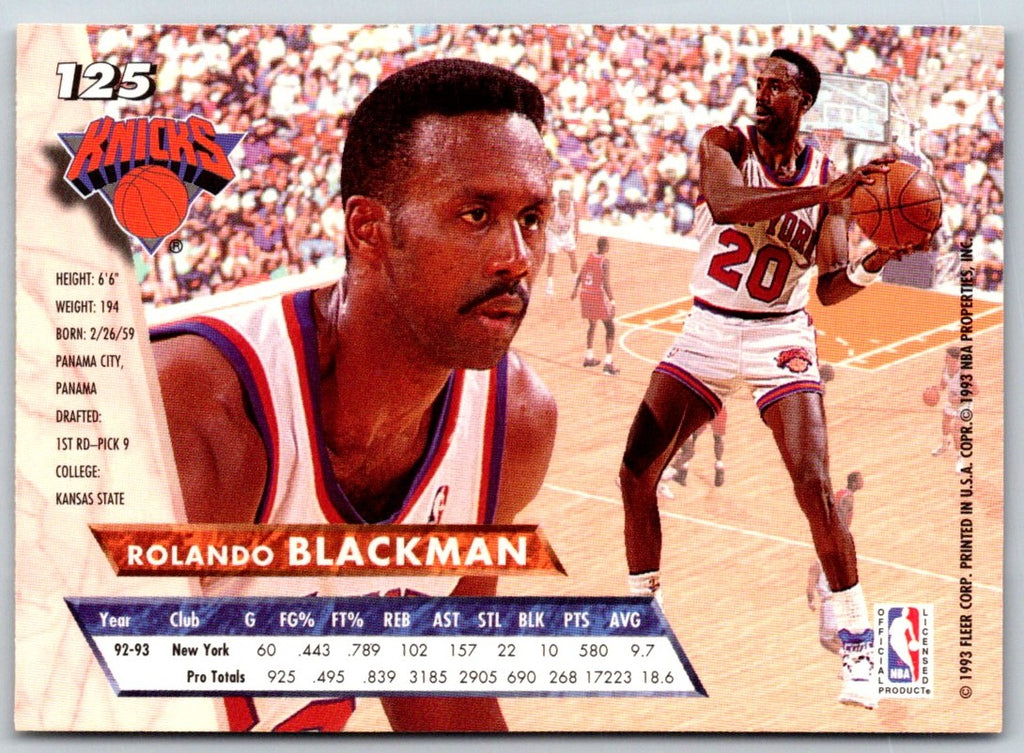 This 1993 Ultra Rolando Blackman #125 New York Knicks card is a must-have for any basketball fan. It features a full-color photo of the iconic Knicks player in mid-action, making it the perfect addition to any collection. The card is in excellent condition and features the original glossy finish. Add this classic collectible to your collection today and show off your love for the Knicks and Rolando Blackman.