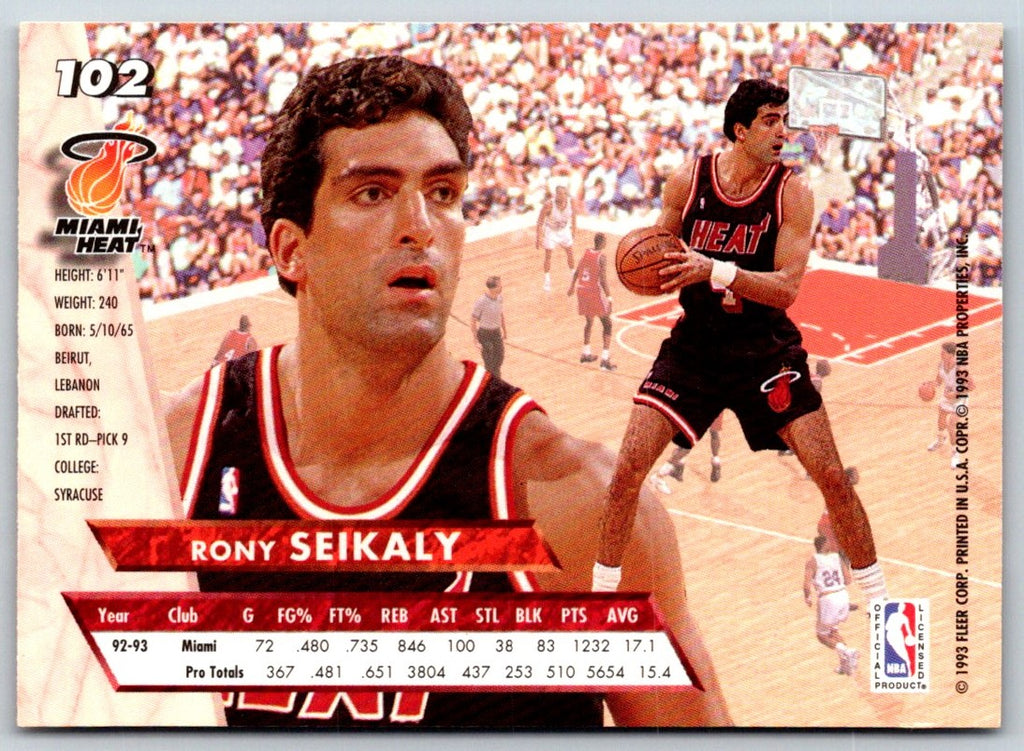 This 1993 Ultra Rony Seikaly #102 Miami Heat card is perfect for collectors of all ages! Featuring a full-color portrait of the Miami Heat great, this card is the perfect addition to any collection. The card has a glossy finish to make it stand out, and the back shows various stats and awards from Seikaly's career. This card is sure to be a great conversation starter and a fantastic way to pay tribute to the history of the Miami Heat!