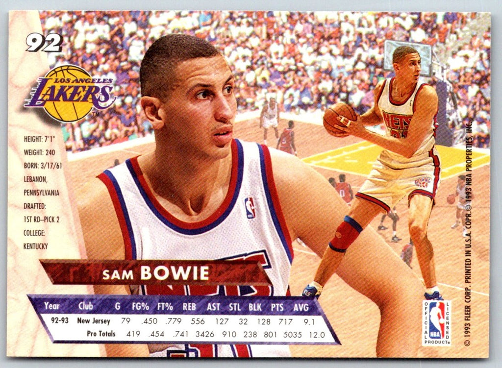 This 1993 Ultra Sam Bowie #92 LA Lakers card is a must-have for any die-hard collector. Showcasing a vibrant image of Sam Bowie in action, this card is sure to stand out in any collection. With its bright colors, sharp detail, and unique design, this card is sure to make an impression. Featuring accurate stats from Sam Bowie's 1993 season, this card is perfect for any avid fan or collector. Get your hands on this card now and add a touch of nostalgia to your collection!