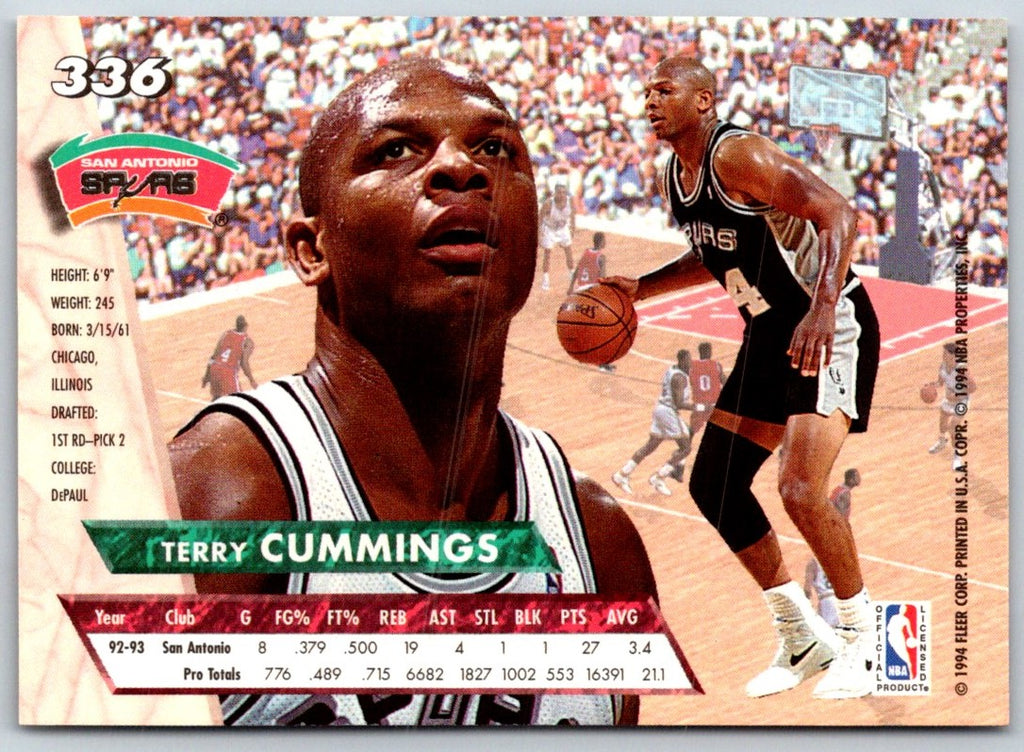 This 1993 Ultra Terry Cummings #336 San Antonio Spurs card is a great collectible for basketball card enthusiasts! It features a color photo of Terry Cummings playing with the San Antonio Spurs, with a printed signature and detailed stats on the back. This card is a great way to show your support for the Spurs and your respect for Cummings' career. Add this card to your collection today and show your appreciation for one of the greatest players to ever wear a Spurs jersey!