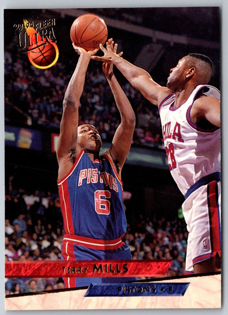 This 1993 Ultra Terry Mills #58 Detroit Pistons card is a great addition to any basketball card collection. It features Mills in action wearing his Pistons jersey, with a full-color headshot and a detailed stats section on the back. This card is sure to become a fan favorite and a must-have for any Pistons collector. This card is in mint condition and is a great piece of memorabilia to add to any collection. Show your Pistons pride and add this card to your collection today!