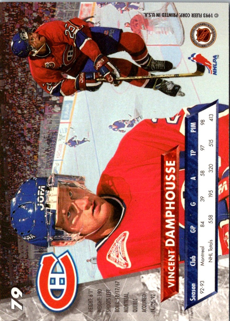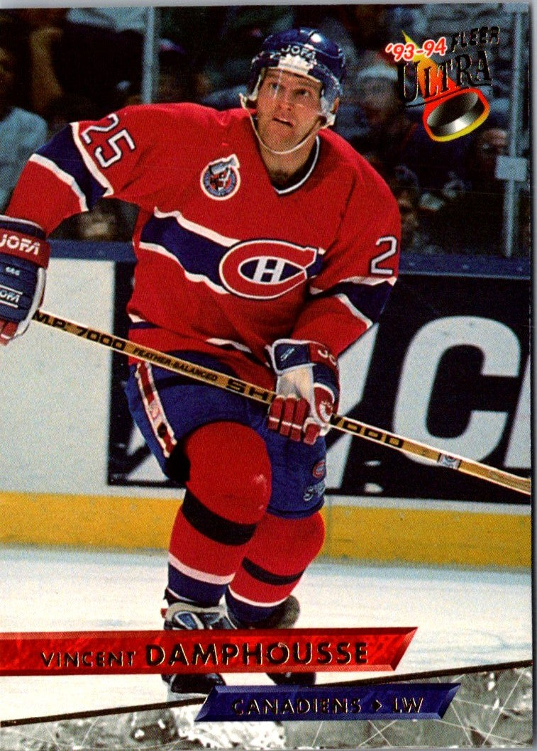 This 1993 Ultra Vincent Damphousse #79 Montreal Canadiens trading card is an essential for any collector or fan of the team. Featuring an action shot of the player in his iconic Canadiens jersey, this card is a great addition to any collection. The card is in near-mint condition, with vibrant colors and sharp details. A must-have for any Canadiens fan!