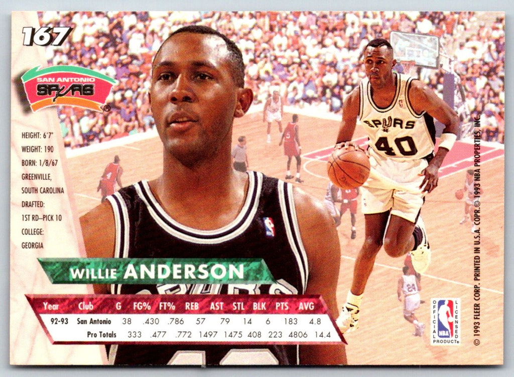 This 1993 Ultra Willie Anderson #167 San Antonio Spurs card is the perfect addition to any basketball fan's collection. It celebrates Anderson's impressive career with the Spurs, featuring his iconic photo and team colors. With its vibrant colors and crisp design, this card is sure to be a hit with any collector or sports fan. Show your Spurs pride and collect this amazing card today!