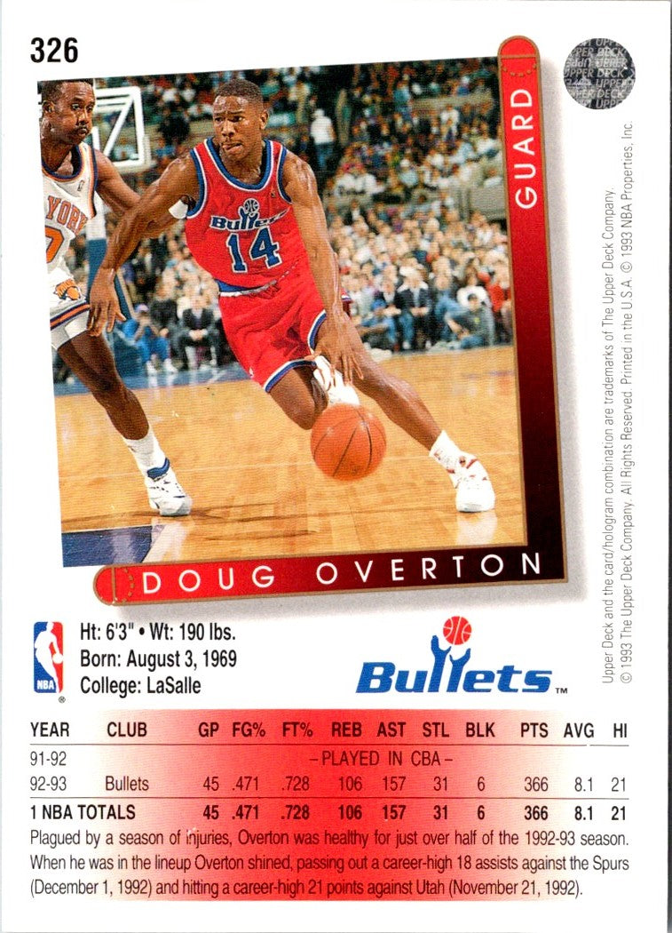 Description: 1993 Upper Deck Doug Overton #326