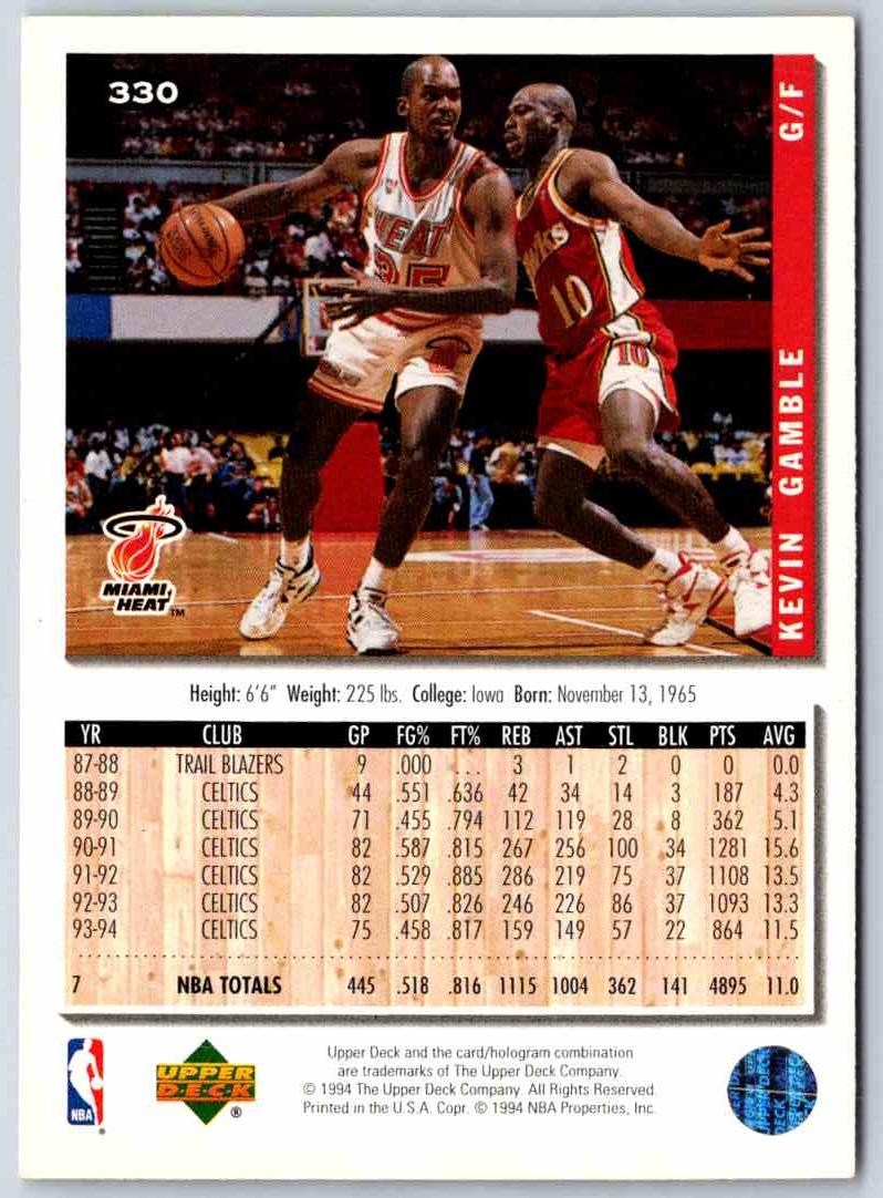 1993 Upper Deck Kevin Gamble #330 is a must-have for any basketball card collector. With an action shot of the former NBA star in full swing, this card captures the essence of the player's career. The card's front features a white background with a crisp and vibrant image of Gamble, and the back highlights his career stats and accomplishments. This card is in near-mint condition and is a great addition to any collection. Get your hands on this timeless piece of basketball history today!