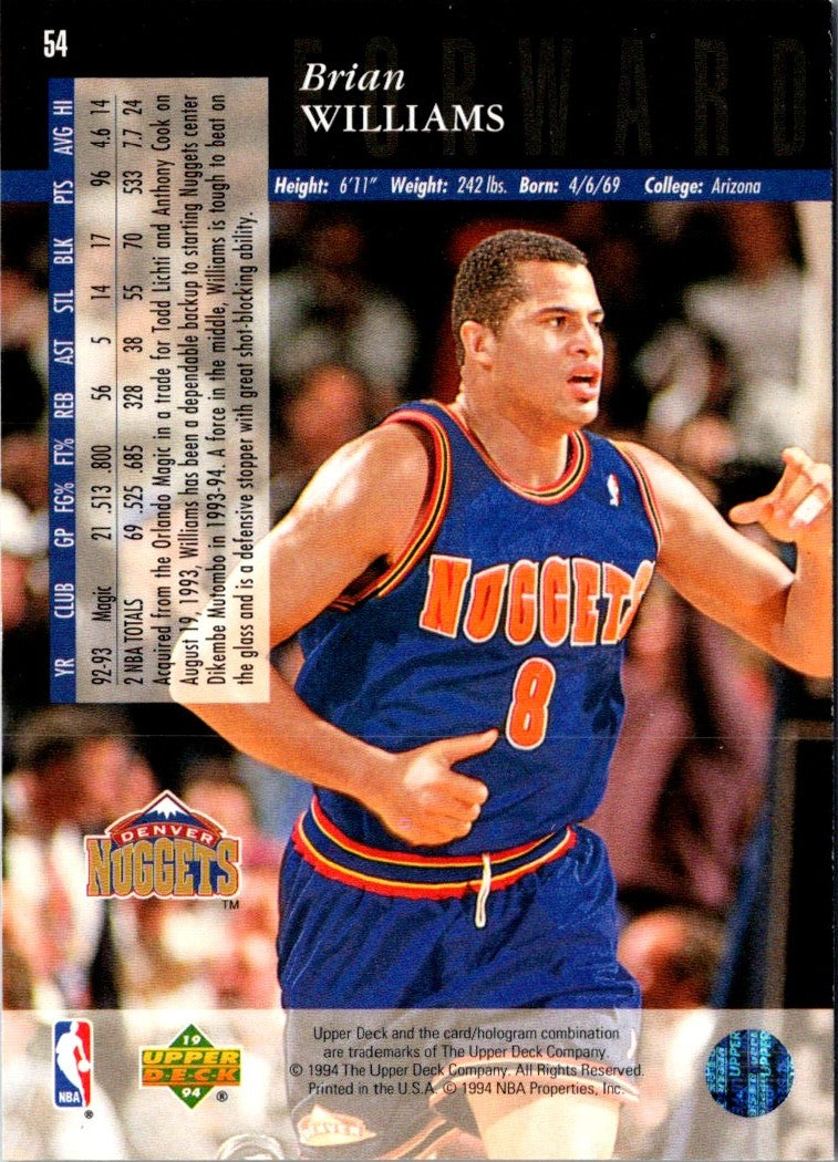 Description: 1993 Upper Deck Special Edition Brian Williams #54
