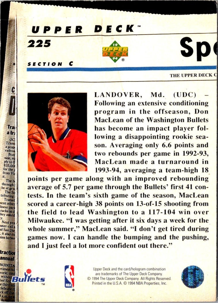 Description: 1993 Upper Deck Special Edition Don MacLean #225