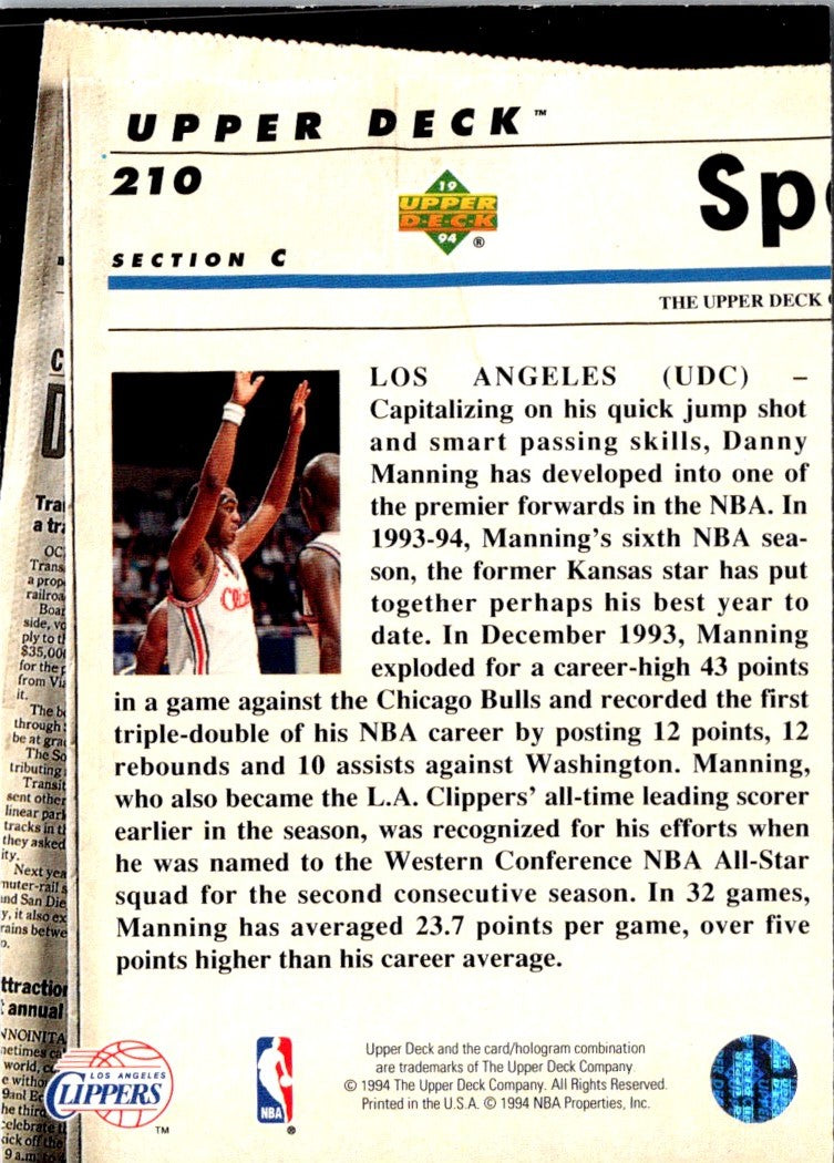 Description: 1993 Upper Deck Special Edition Electric Court Danny Manning #210