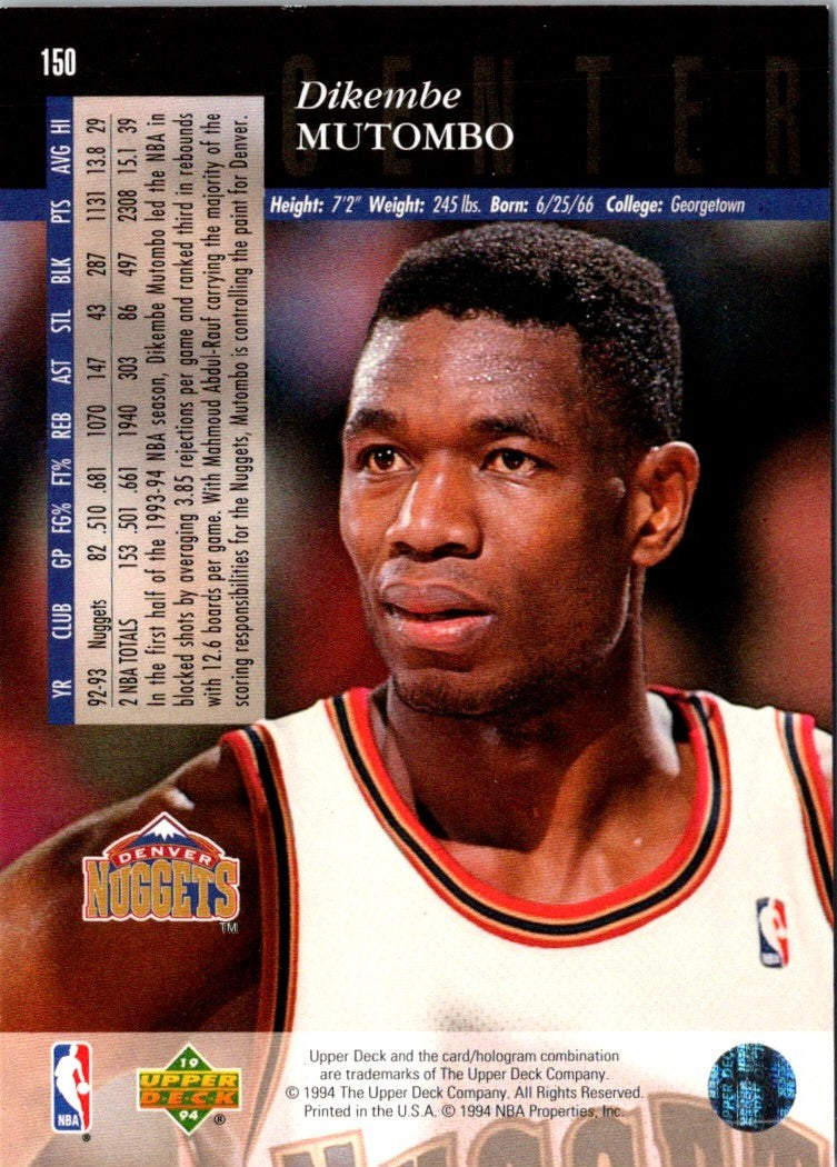 Description: 1993 Upper Deck Special Edition Electric Court Dikembe Mutombo #150