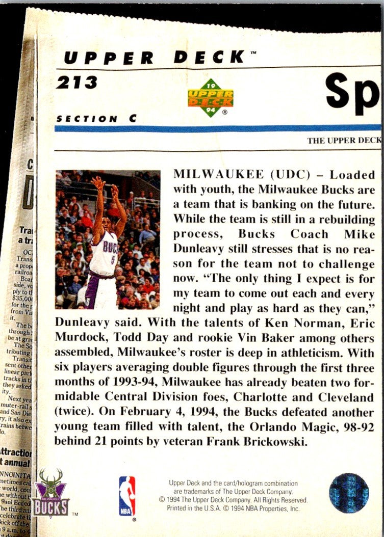 Description: 1993 Upper Deck Special Edition Electric Court Todd Day/Ken Norman/Jon Barry/Vin Baker #213