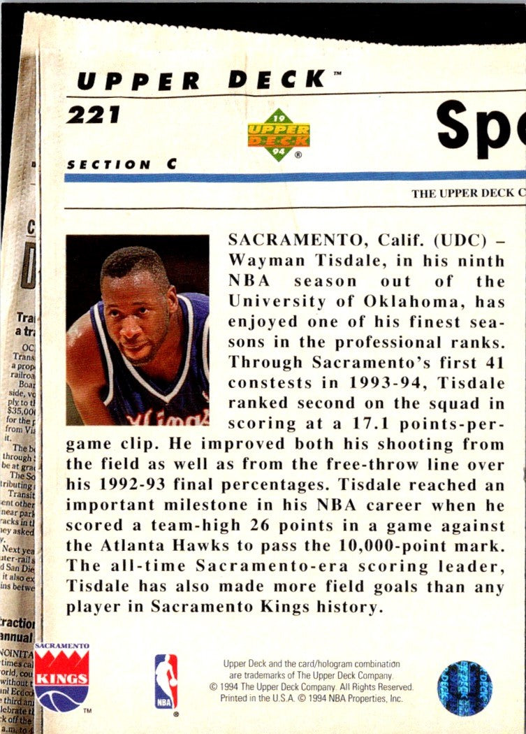 Description: 1993 Upper Deck Special Edition Wayman Tisdale #221