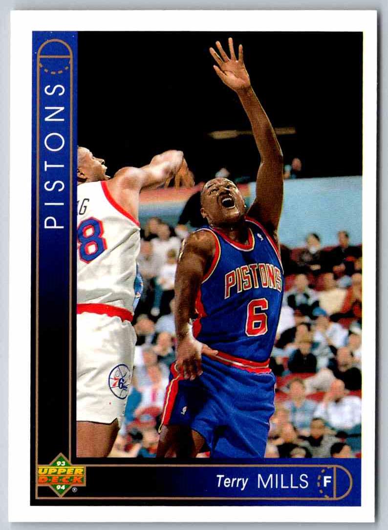 This 1993 Upper Deck Terry Mills card is an essential addition to any basketball fan's collection. Featuring a photo of Mills in full action as a member of the Detroit Pistons, the card captures the excitement of the game. Highlights include stats and information on Mills' career, as well as a special foil accenting his name and team logo. It's a great way to commemorate the career of one of the NBA's all-time greats. Add this card to your collection today!