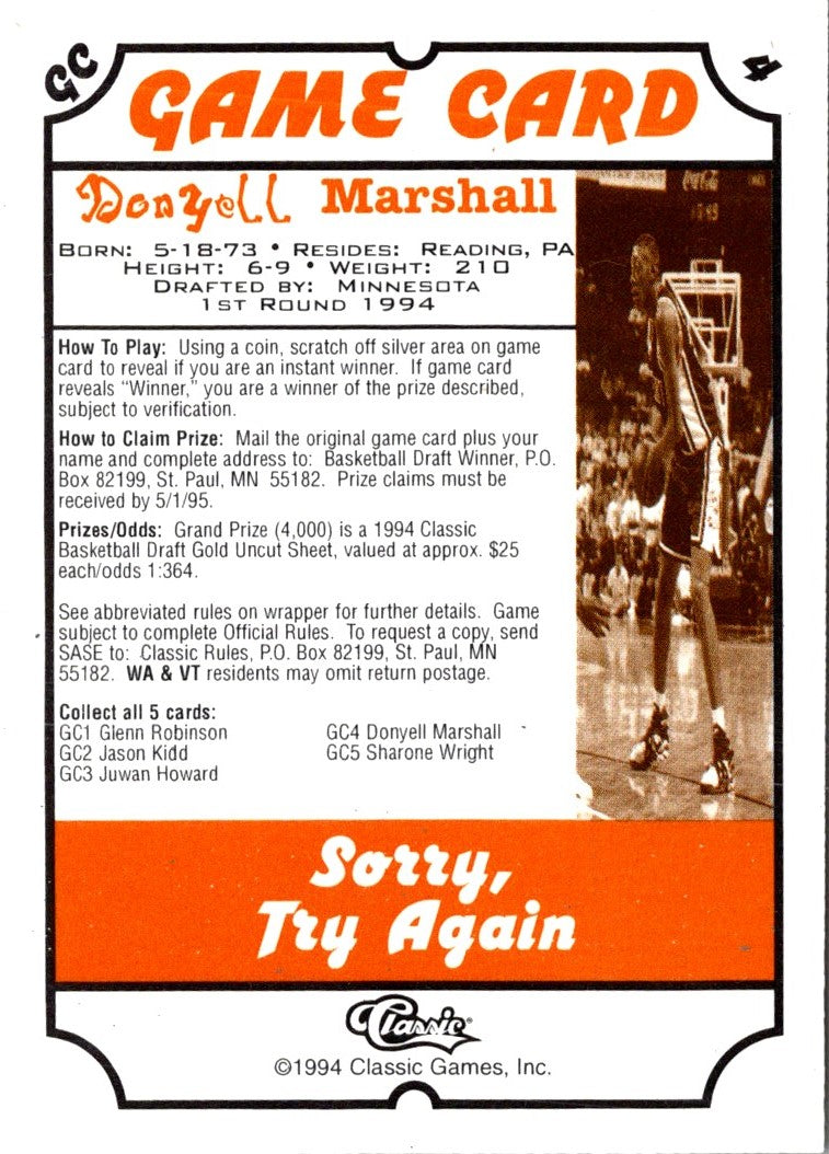 1994 Classic Draft Game Cards Donyell Marshall #GC4