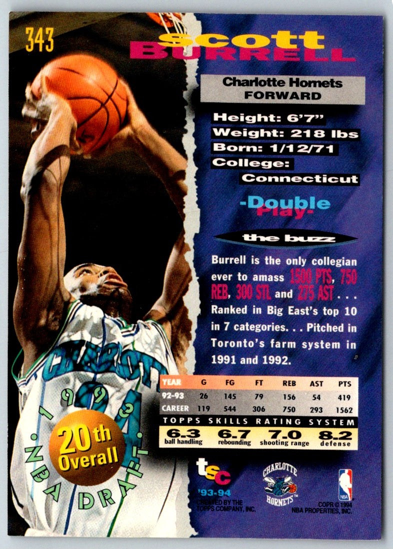 This 1994 Collector's Choice Scott Williams #343Philadelphia 76ers card is a must-have for any serious basketball collector. Featuring a classic image of Scott Williams on the court, this card is a great way to commemorate one of the best players to ever don a 76ers uniform. Printed on premium cardstock, this card is sure to look great in any collection. Don't miss your chance to add this piece of NBA history to your collection!