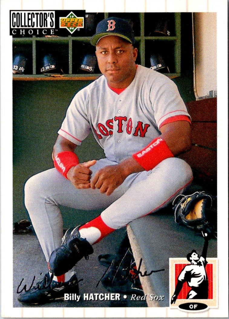 This 1994 Collector's Choice Silver Signature Billy Hatcher #128 is a must-have for any die-hard Boston Red Sox fan! This card features Hatcher in a Red Sox uniform, ready to take the field and hit it out of the park. Every detail is captured perfectly, from the bright colors of the logo to the stitching of the uniform. This card is sure to be a standout in any collection, and will be a treasured reminder of the Red Sox’s proud history. Add it to your collection today!