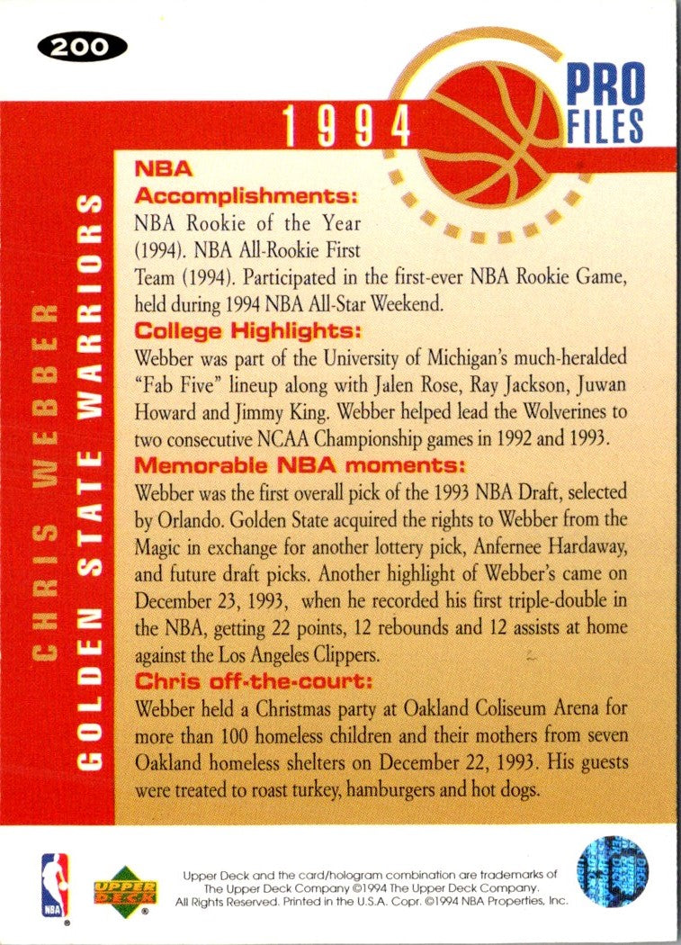 Description: 1994 Collector's Choice Silver Signatures Chris Webber #200