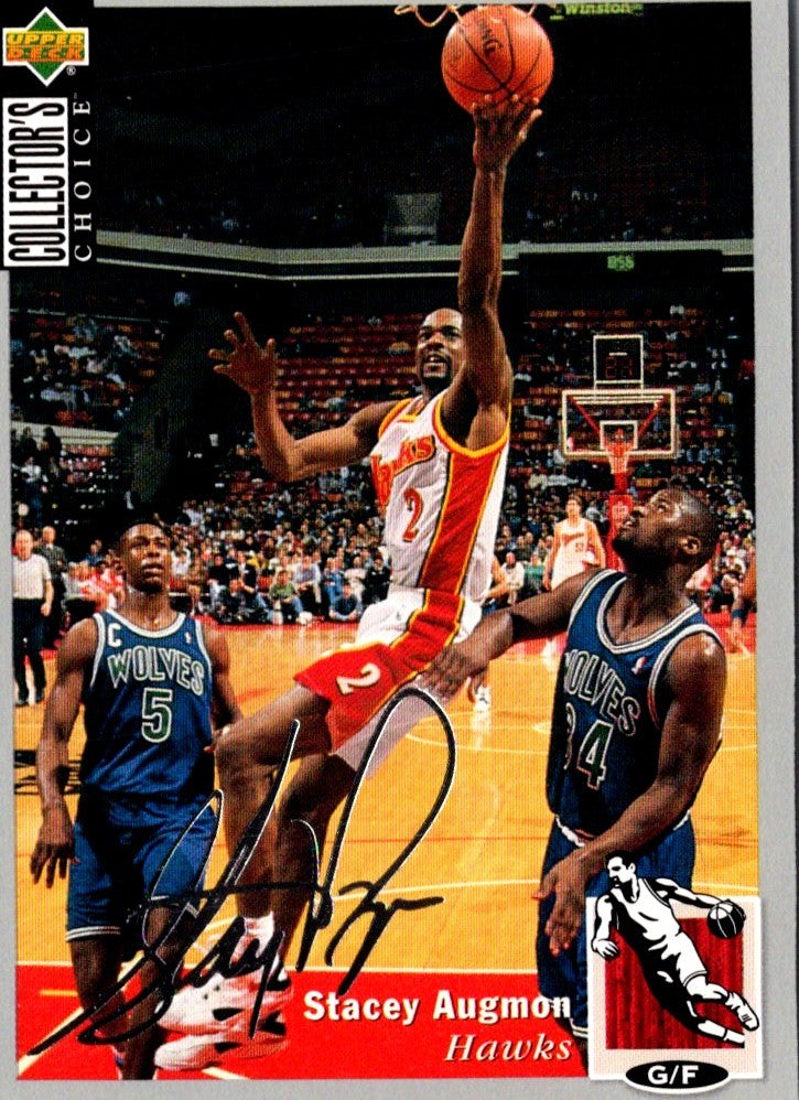 This 1994 Collector's Choice Stacey Augmon #59 Atlanta Hawks card is a must-have for any basketball fan! Featuring vivid colors and sharp corners, this card is sure to be the centerpiece of any collection. An all-star player, Augmon was an integral part of the Hawks franchise from 1994-95, including being part of the team's Eastern Conference Championship run. A great addition to any basketball collection, this card will be a treasured item for years to come.
