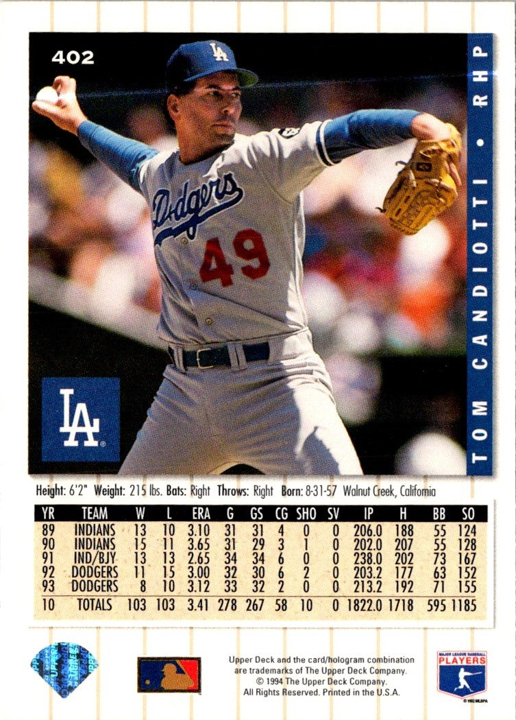 Description: 1994 Collector's Choice Tom Candiotti #402 Silver
